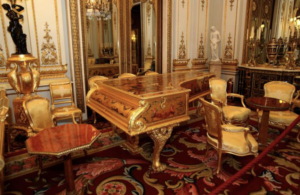 素材もマホガニー、ウォールナット、ローズウッドといった高級木材が中心。なかにはフランス・ナポレオン3世様式の金箔装飾や、イギリスのチペンデール様式の緻密な彫刻が施されたものも数多く作られました。